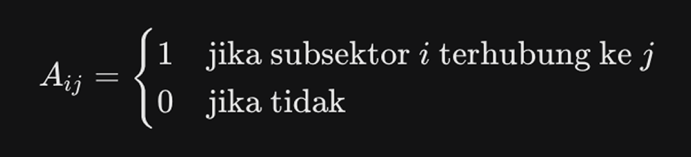 Ini adalah bagaimana semua pihak dalam ketiga sektor tersebut saling terhubung yang secara matematis, koneksi ini dapat digambarkan dengan Matriks Adjasensi: