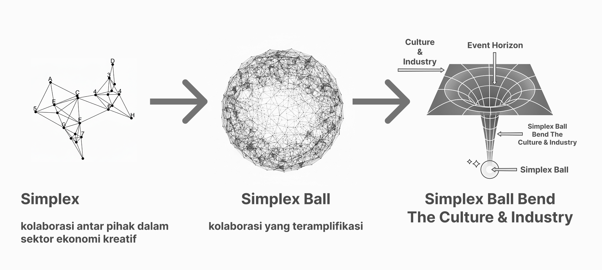 ketika sebuah konsolidasi antara Ekonomi kreatif + Tech + Finance mencapai kepadatan ekstrem—terjadilah singularitas—dimana seluruh pihak ditarik masuk ke dalam satu titik tunggal yang menuju pada sebuah dimensi yang benar-benar berbeda.