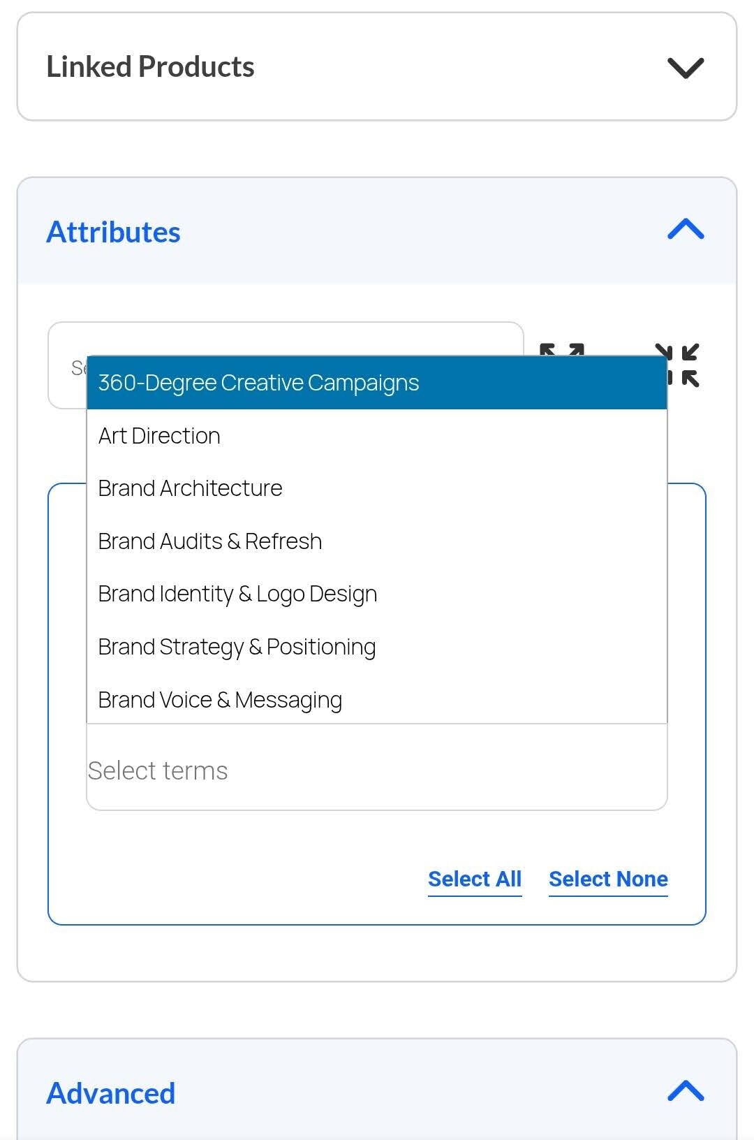 Dari gambar di bawah ini, misalnya produk atau jasa yang mau kalian jual adalah bagian dari “Creative & Brand Agency” services.