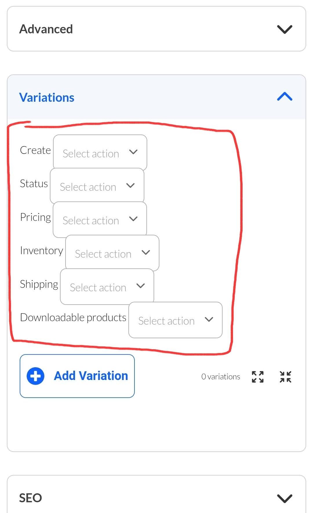 Setelah milih produk apa aja yang mau lo jual, slide ke bawah dan pencet tab “Variations”