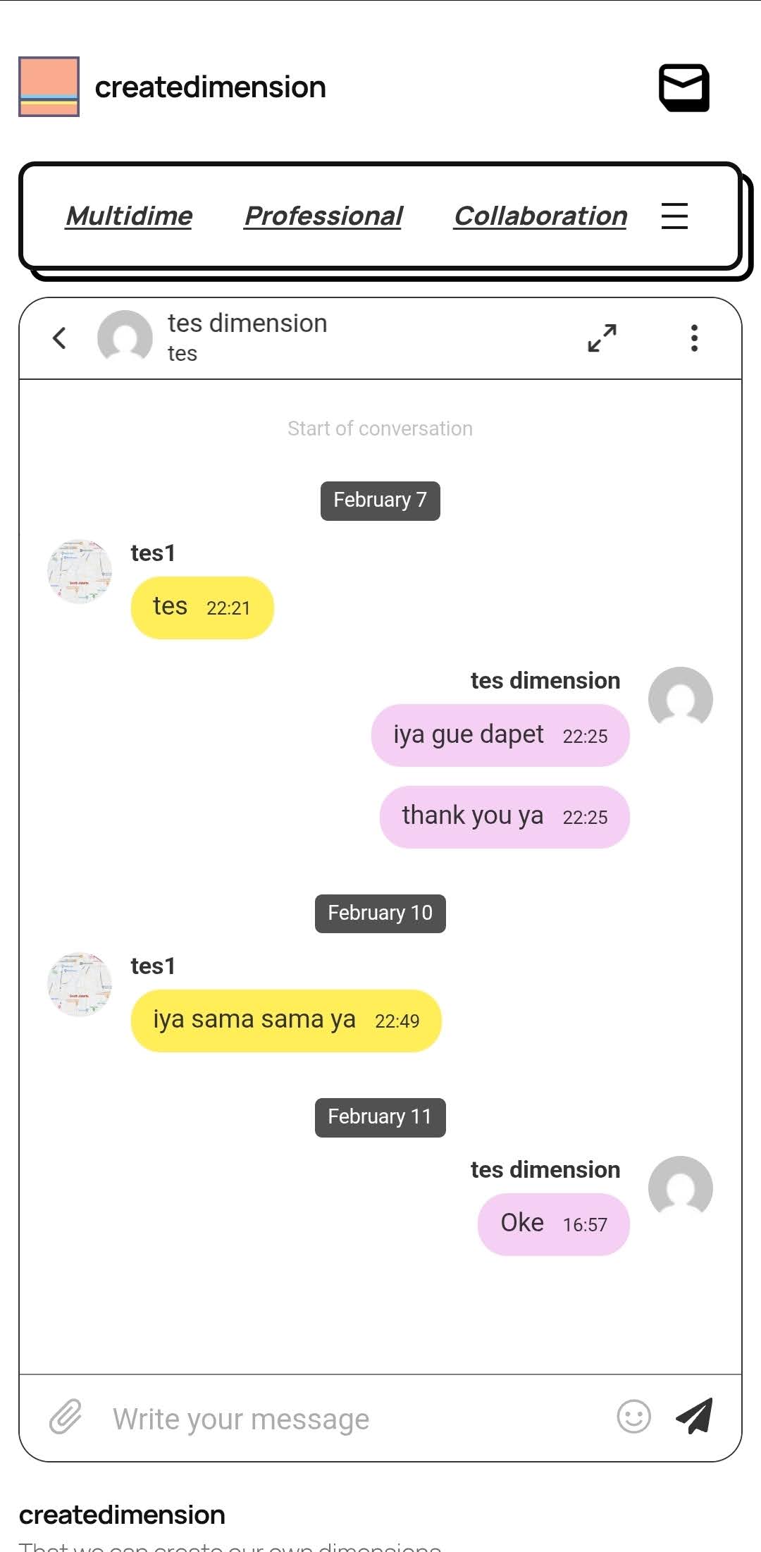 Kalian harus mengaktifkan fitur message untuk dapat berinteraksi dengan pengguna lainnya dalam platform multidime.