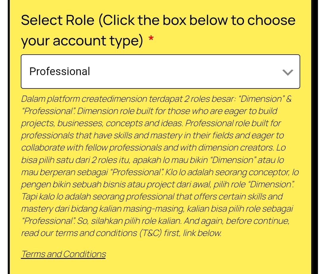 Dalam platform Multi Dimensions untuk “sign-up” terdapat 2 jenis accounts yang bisa kalian pilih: